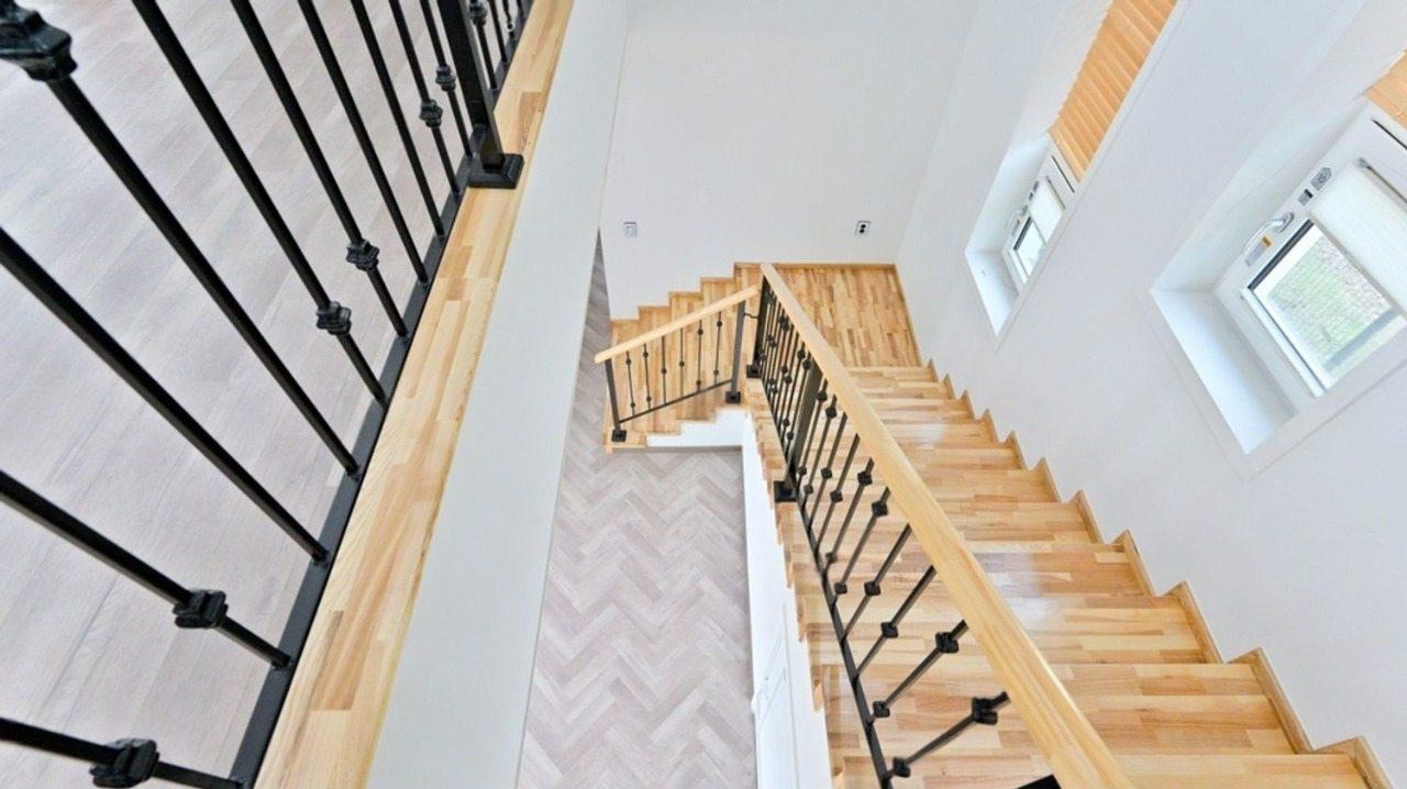Этот проект — блестящий пример того, как стандартное бетонное основание превращается в статусный и гармоничный элемент интерьера. Нашей задачей было создать не просто удобную, но и выразительную лестницу, которая бы объединяла пространство. Решением стало сочетание теплого бука, строгой ковки и уникальной боковой отделки, которая придает всей конструкции особый характер и динамику.