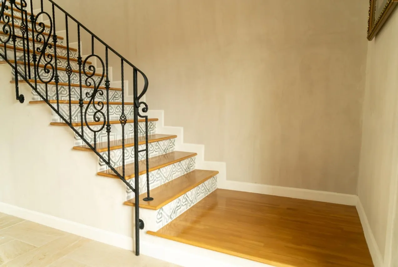 Этот проект — образец того, как практичность и продуманный дизайн создают безупречную гармонию. Мы выполнили отделку прямого бетонной лестницы, превратив ее в статусный элемент интерьера. Ключевыми особенностями стали эффектное сочетание теплого бука с ковкой и продуманная система подсветки, которая добавляет комфорта.
